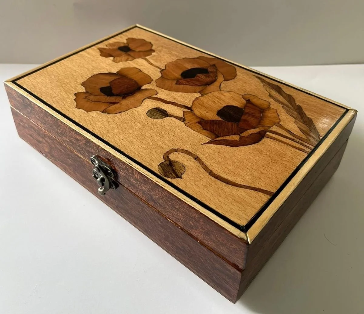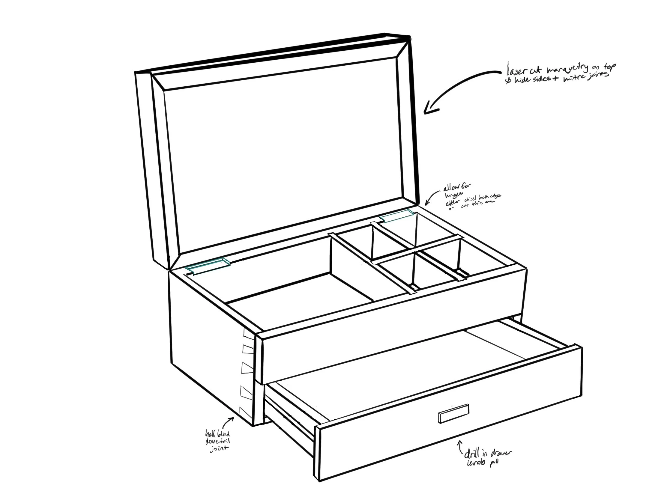 Learn how to make half-blind dovetail joints, marquetry, and more